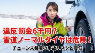 雪道をノーマルタイヤで走ると違反になる?反則金や点数は?2018年導入のチェーン規制との違いや、事故時の過失割合、保険適用のリスクまで徹底解説。60代からの安全運転ガイド。