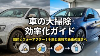 車の大掃除を効率よく終わらせる方法を徹底解説。車内清掃から鉄粉・水垢除去、コーティングまで、短時間で愛車を新車のように輝かせる手順を紹介します。失敗しない道具選びや裏技も公開。年末や連休の洗車に最適な完全ガイドです。