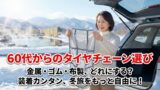 この記事では、60代からのアクティブなカーライフを応援するために、体力を温存しながら安全を確保する「タイヤチェーン装着術」をご紹介します。現場での作業時間を10分以内に短縮するための「三種の神器」や、事前の予行演習のポイント、そして私たち世代にこそおすすめしたい最新のチェーン事情まで。経験豊富なドライバーだからこそ実践したい、賢い大人の準備術をぜひ取り入れてみてください。